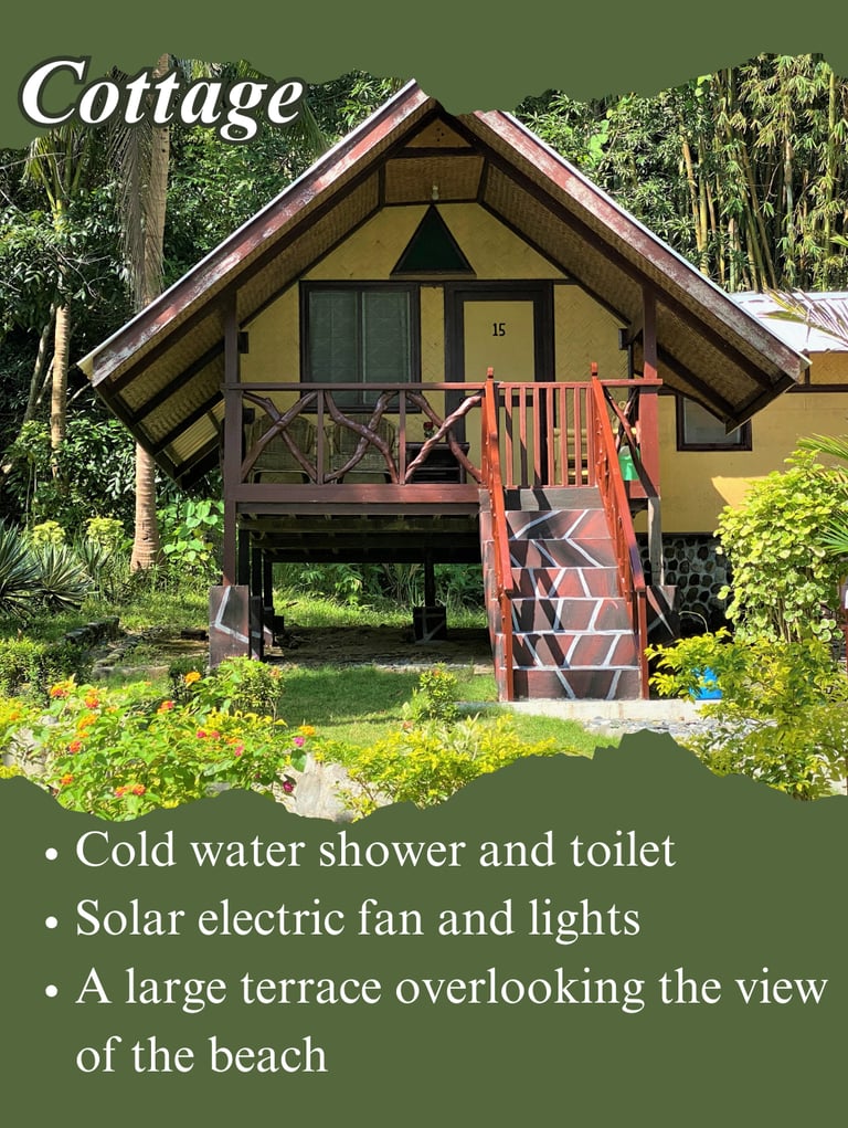 All our Bungalows and Cottages are good for two (2) persons with a view of the sea.